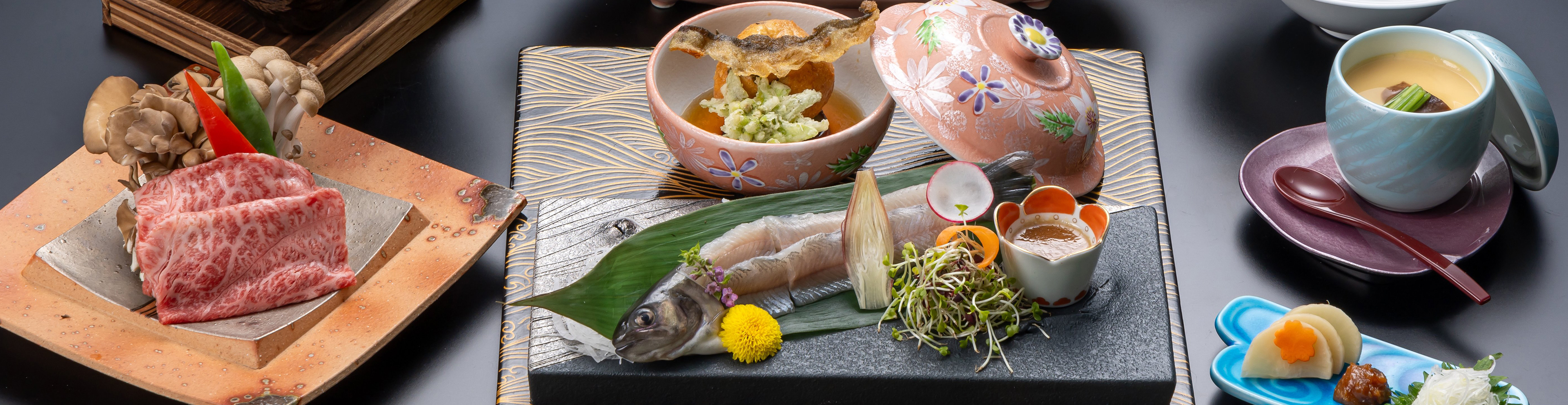 北アルプスの恵みを極めた、最上級の信州会席。岩魚の姿造りや信州プレミアム牛三種など、格別の一皿がそろいます。
