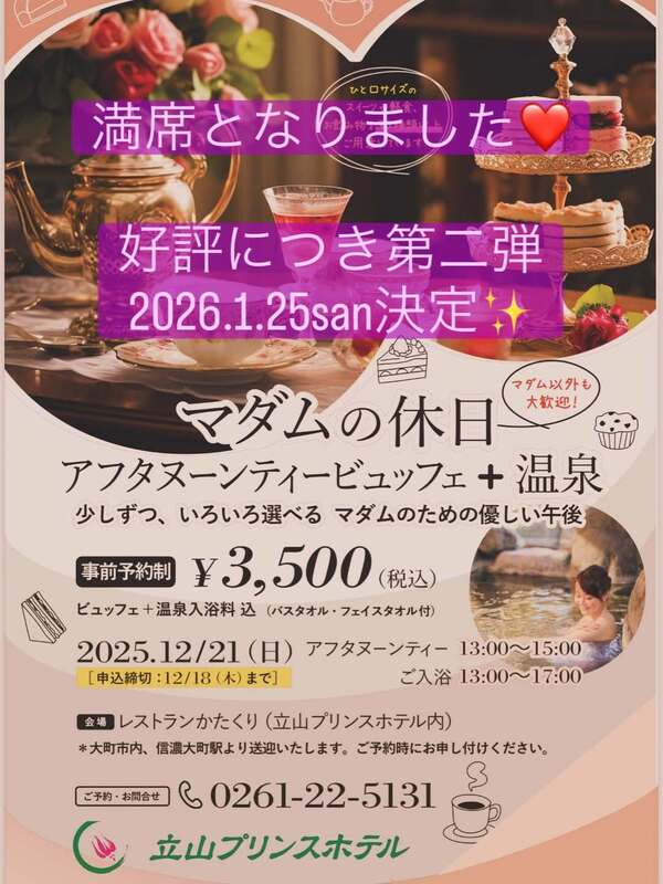 そんな皆様にアフタヌーンティーブッフェと温泉♨️はいかがでしょうか?