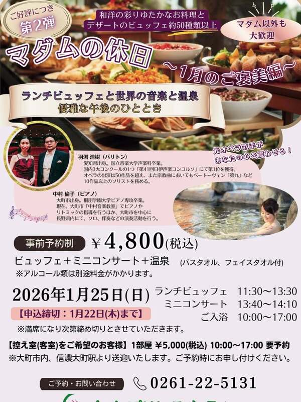 そのあとはミニコンサートで優雅な午後のひとときを過ごしませんか?元オペラ歌手とピアノによる世界の音楽をお楽しみください😊